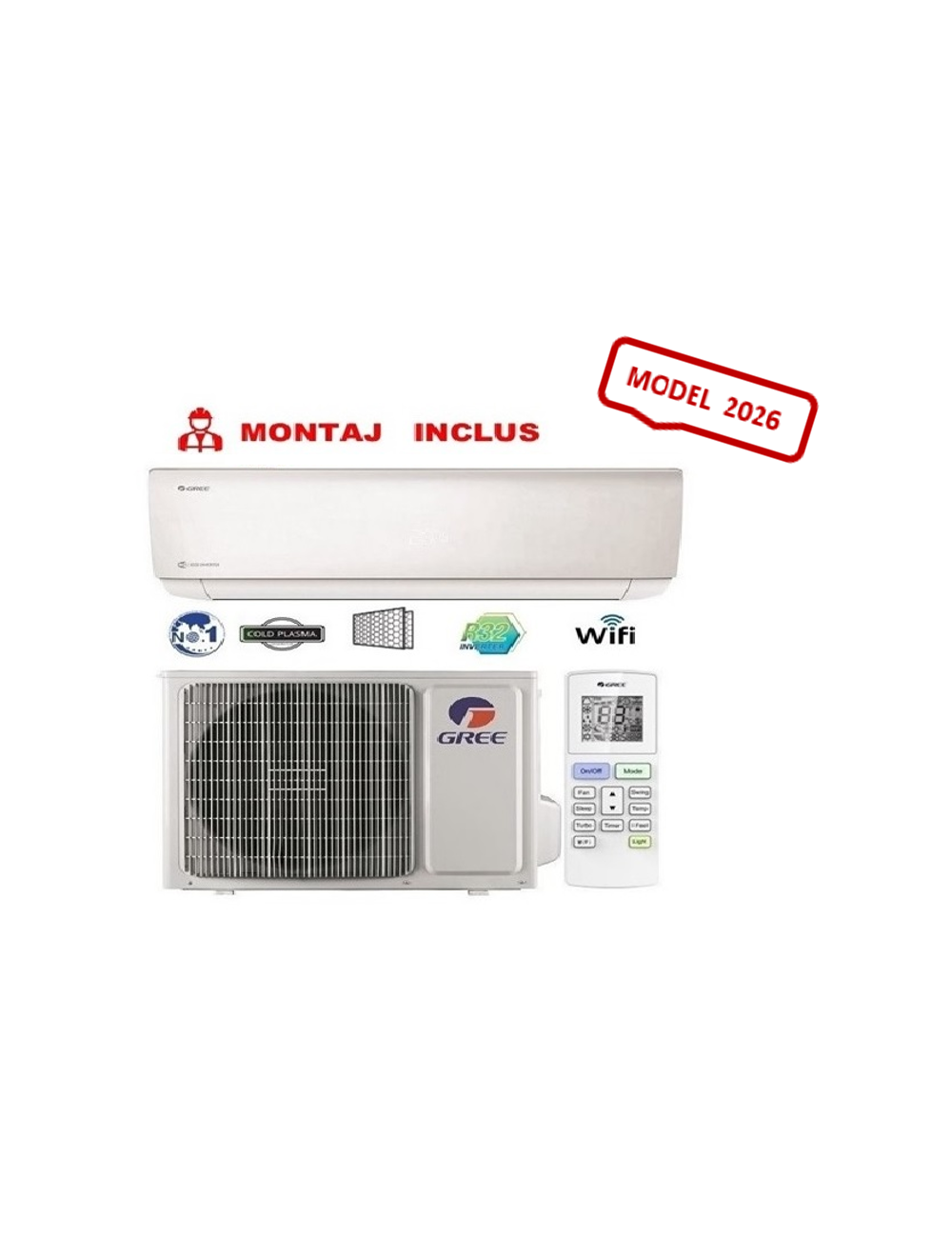 Aparat de aer conditionat Gree Bora A4 Silver GWH09AAAXB-K6DNA4C - INVERTER, 9000 BTU, A++/A+, Wi-Fi