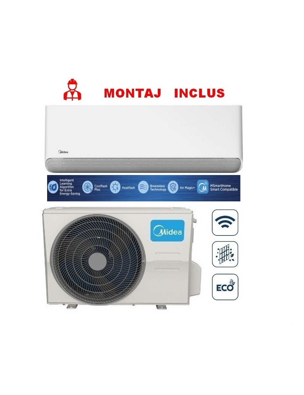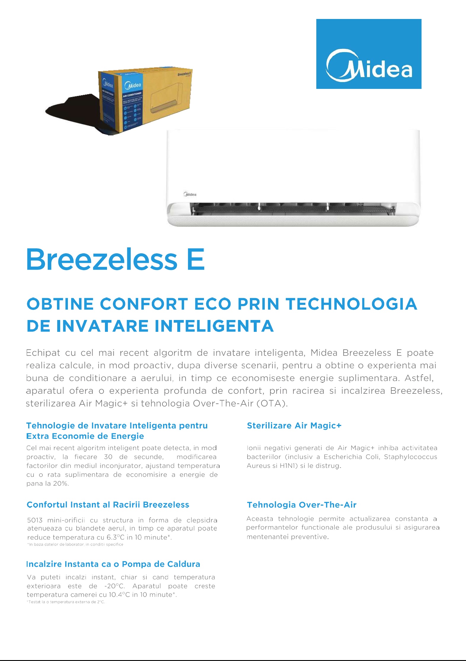 APARAT DE AER CONDITIONAT MIDEA BREEZELESS E – R32,CB1-12HRFN8 INVERTER 12000 BTU